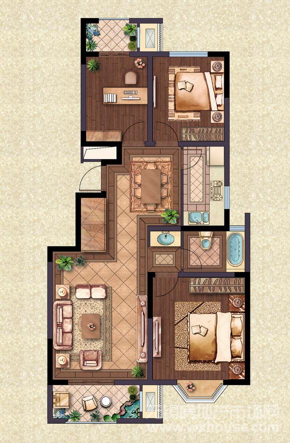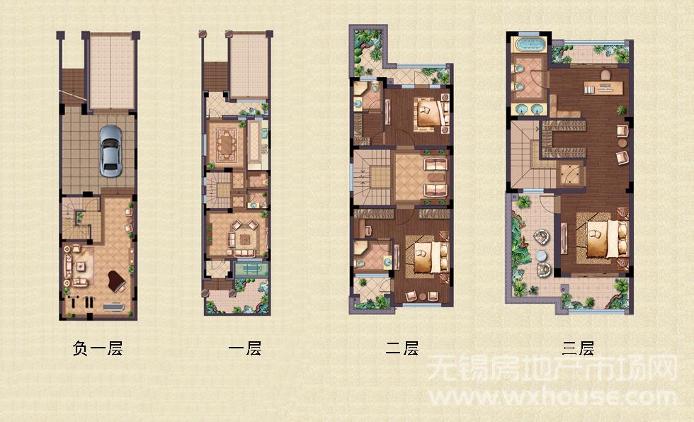 联排别墅,面积约265㎡;小高层住宅,面积:110㎡、178㎡、197㎡