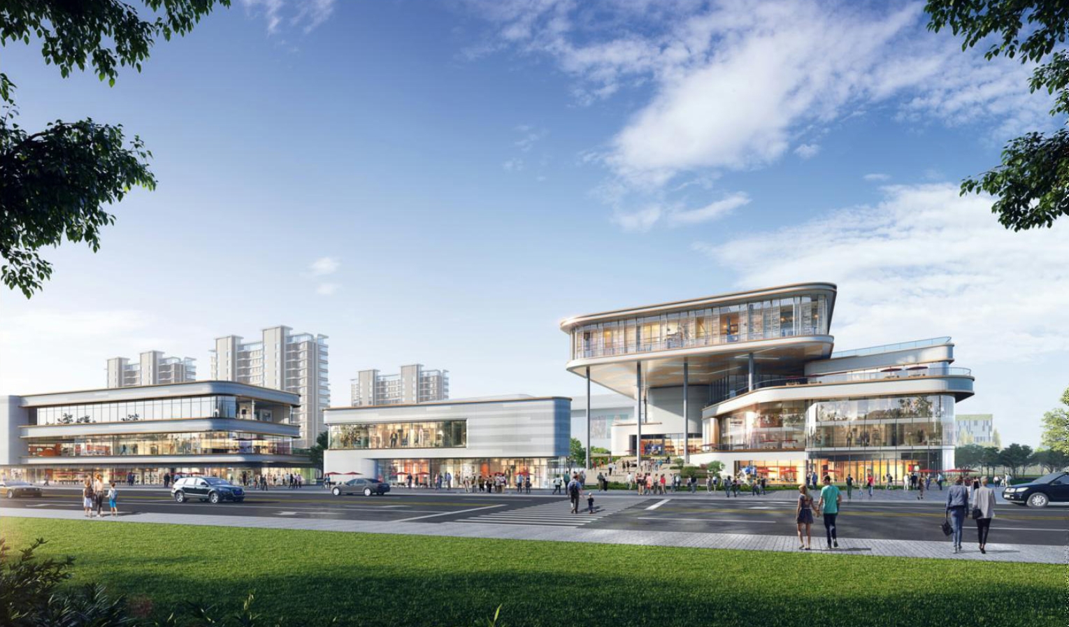 从效果图来看,商业大部分采用玻璃幕墙设计,线条流畅,时尚简约。